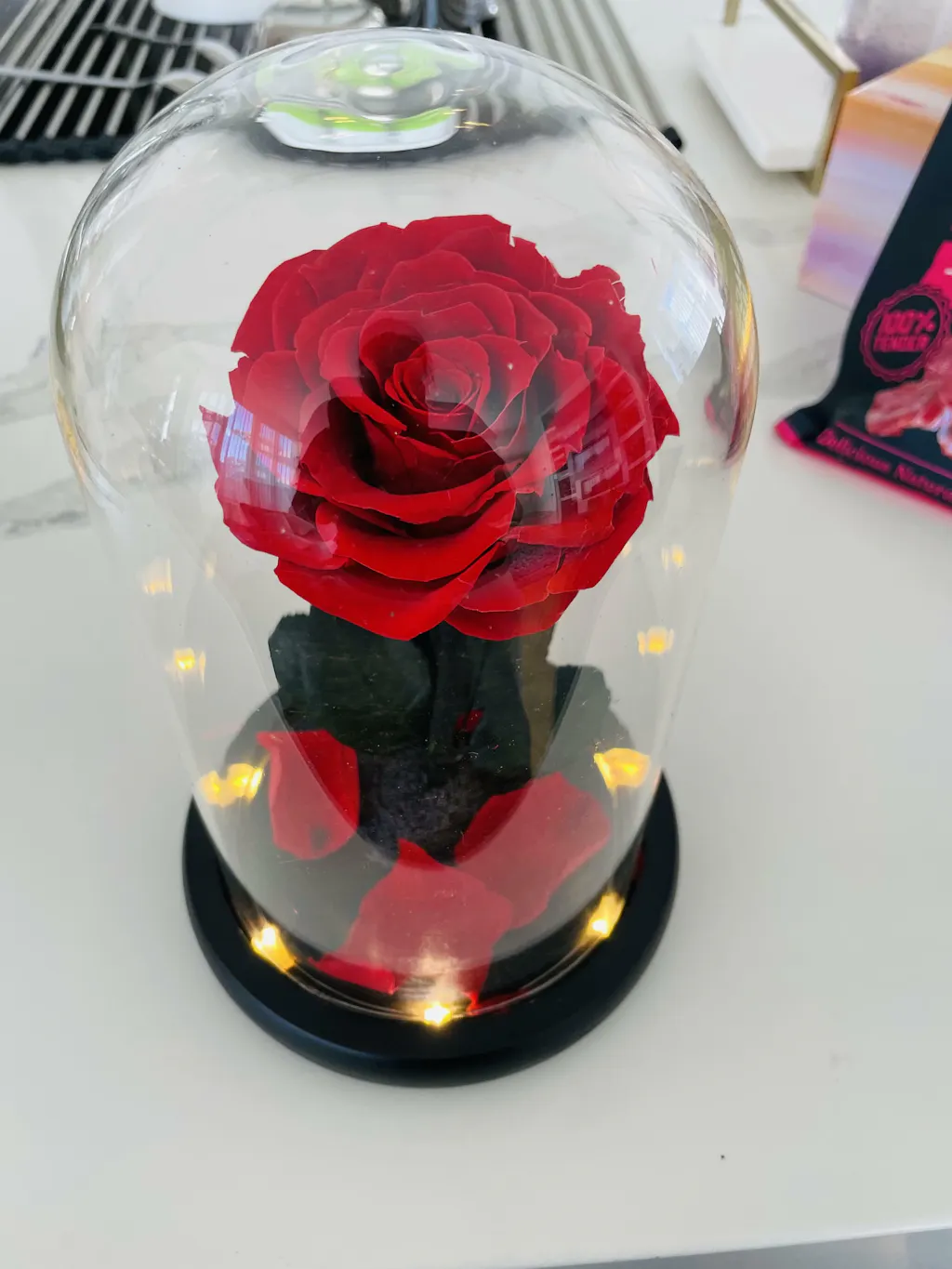 The Eternal Dried Everlasting Rose Dome Glow is a captivating and mesmerising home decor item that will add a touch of elegance to any living space. Featuring a beautiful arrangement of artificial roses that have been meticulously crafted to resemble real roses, this stunning dome is designed to last forever. What makes this rose dome even more special is that it has a built-in glowing effect, making it a perfect choice for creating a warm and inviting ambiance in any room. With its timeless beauty and unique design, the Eternal Dried Everlasting Rose Dome Glow is a perfect gift for a loved one or a great addition to your own home decor collection.